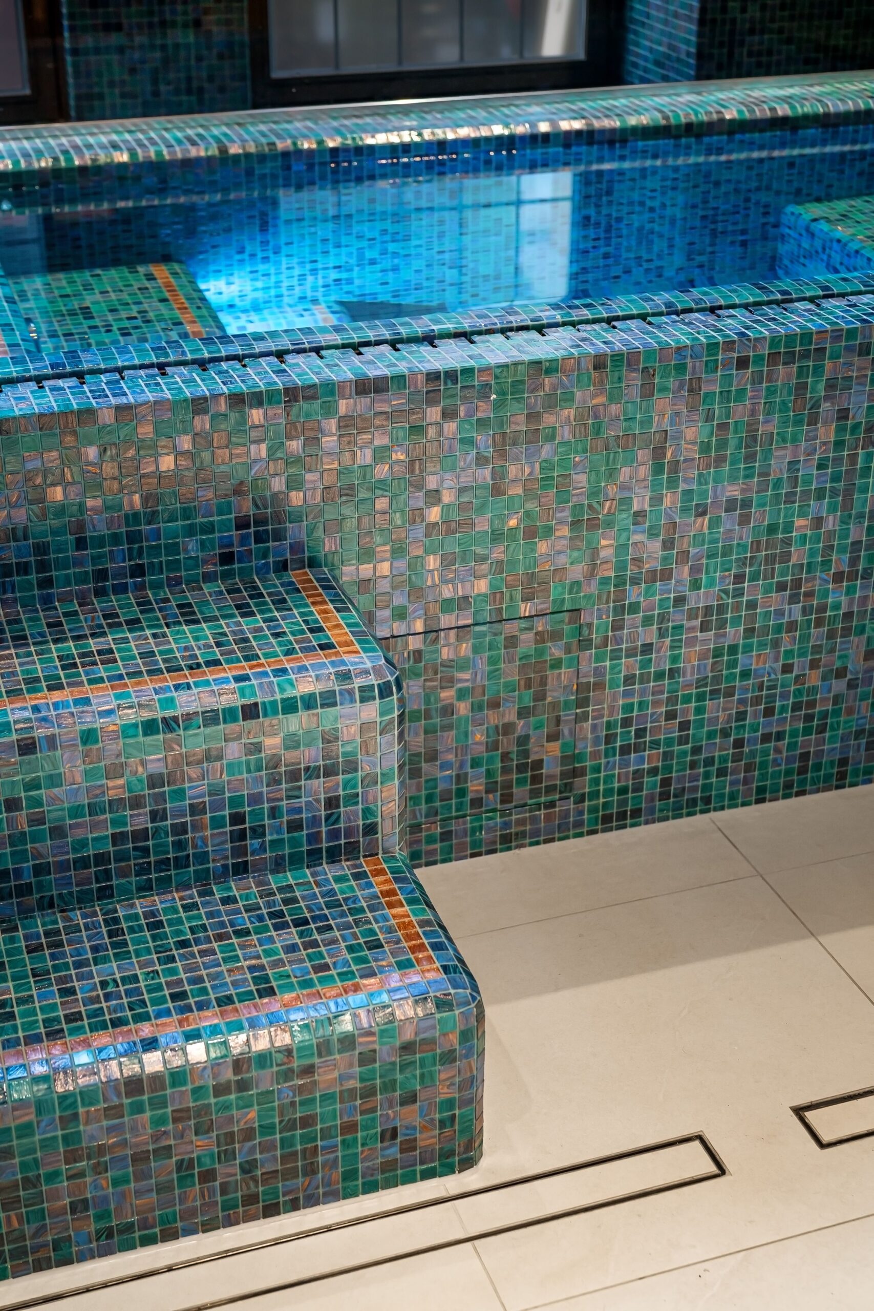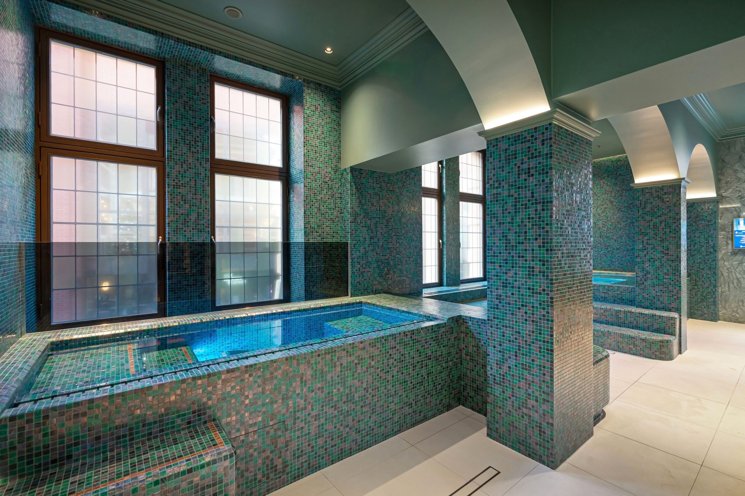 Eksklusivt spa-prosjekt med avansert mosaikkarbeid og høy materialkvalitet.